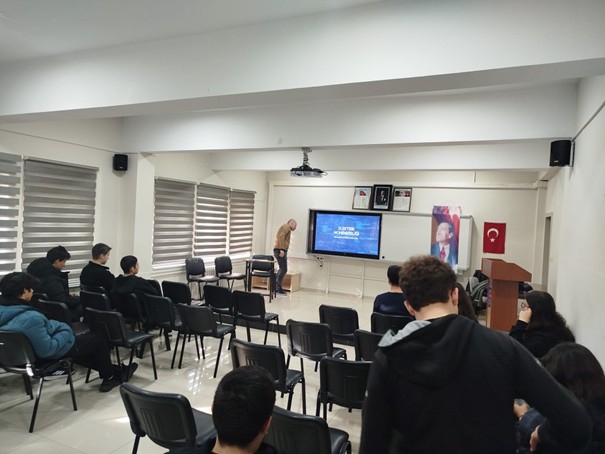 Yüksekokulumuz toplumsal katkı faaliyetleri kapsamında önemli bir bilgilendirme etkinliği gerçekleştirdi. Elektrik Programı Öğretim Üyesi Doç. Dr. Murat Tuna tarafından, TOBB Lisesi öğrencilerine yönelik Elektrik Teknikerliği ve Elektrik Mühendisliği Tanıtımı sunuldu.